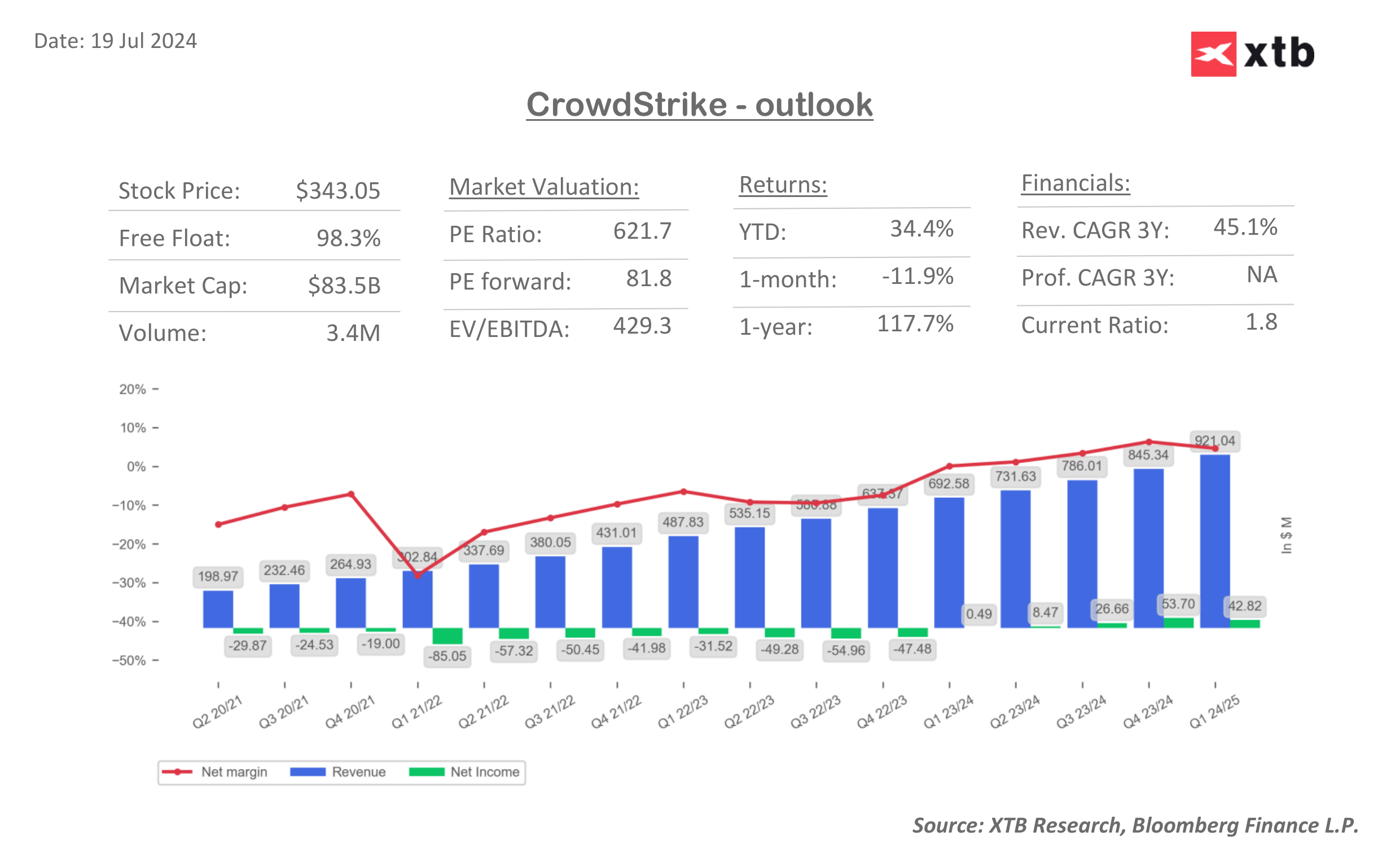Aktualizace softwaru od giganta kybernetické bezpečnosti, CrowdStrike (CRWD.US), kótovaného na burze Nasdaq, mohla způsobit globální výpadek IT systémů a určitý chaos ve finančním a leteckém sektoru. Akciový trh reagoval odpovídajícím způsobem, prodal akcie kvůli potenciálním marketingovým ztrátám a stále možnému riziku reklamace. Včera analytici z Redburn Atlantic snížili cílovou cenu akcií Crowdstrike na 275 dolarů za akcii z 380 dolarů dříve.
