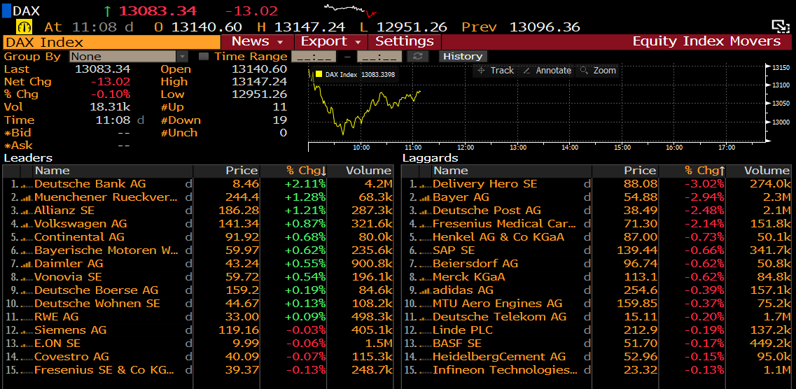 Vývoj akcií z indexu DAX. Zdroj: Bloomberg