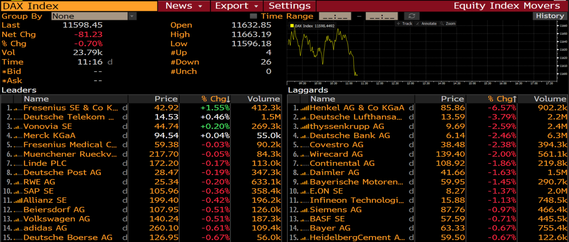 Akcie spoločnosti Henkel zaznamenali najvýraznejší pokles z indexu DAX. Zdroj: Bloomberg