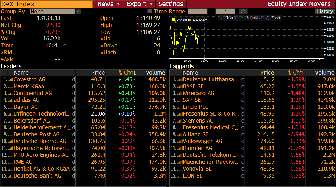 Vývoj akcií z indexu DAX. Zdroj: Bloomberg