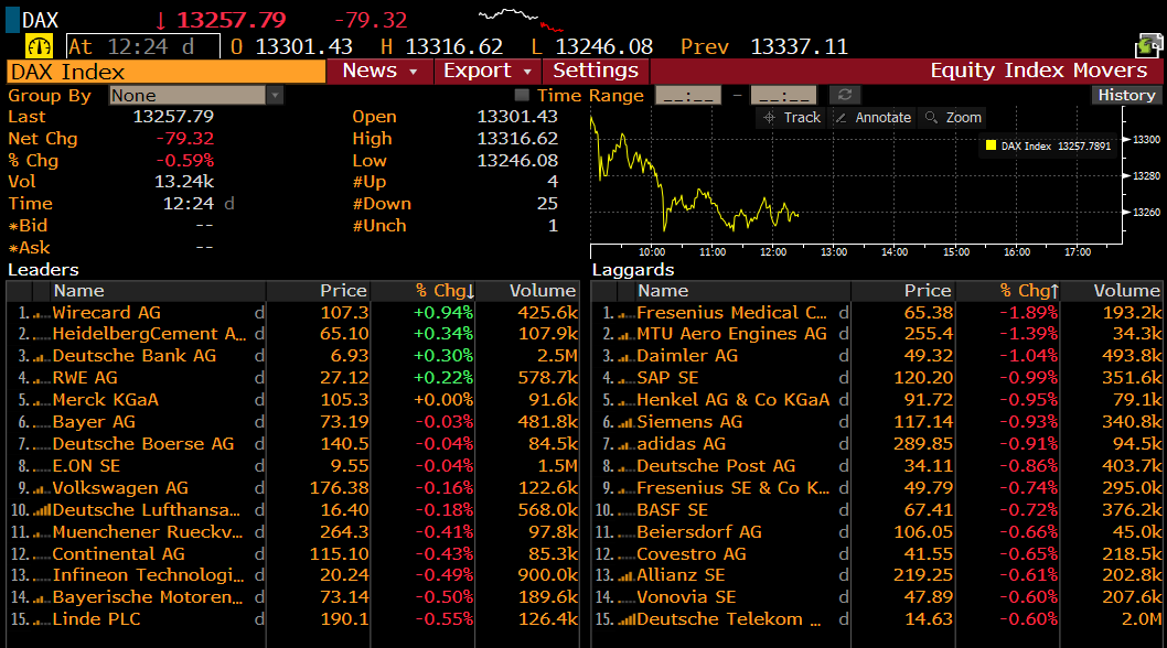 Dnešnímu poklesu vévodí Fresenius, ovšem důvody ztrát se hledají jen stěží. Zdroj: Bloomberg