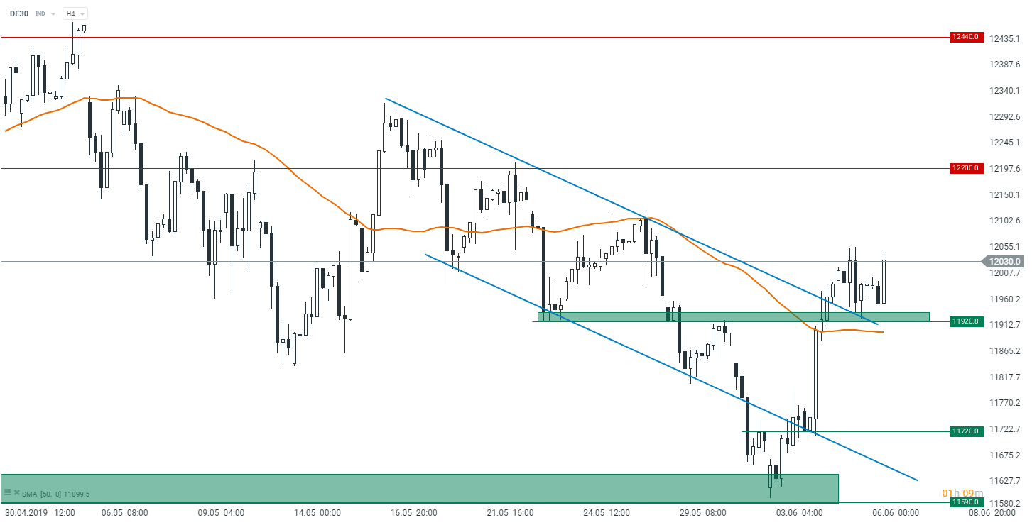 Technická situace nasvědčuje tomu, že se DE30 chystá k dalšímu růstu. O tom vypovídá odražení od důležitého supportu, které otevírá cestu až k úrovním okolo 12 200 euro. Býci mají k dispozici silný support v okolí 11 920 euro, který je zároveň podepřen 50MA. I tak si ale obchodníci musejí dát velký pozor na dnešní odpoledne, které přinese zasedání ECB a tiskovou konferenci Maria Draghiho. Zdroj: xStastion5