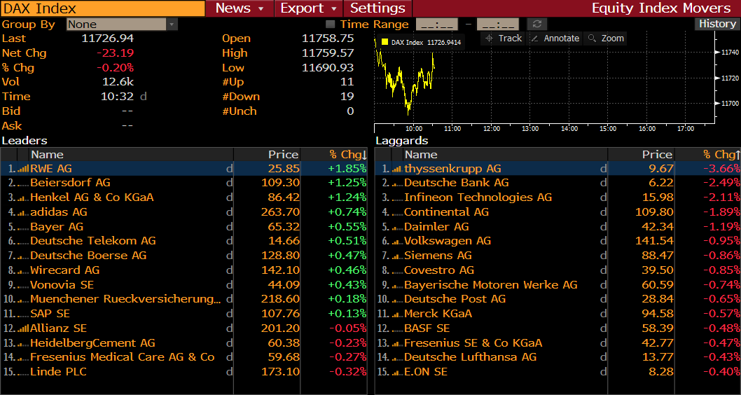 Vývoj akcií z indexu DAX. Zdroj: Bloomberg