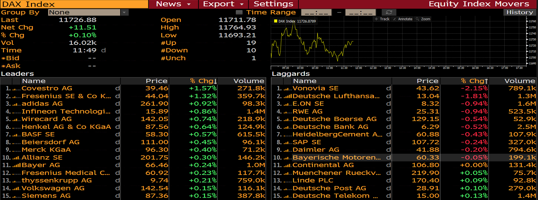 Vývoj akcií z indexu DAX. Zdroj: Bloomberg