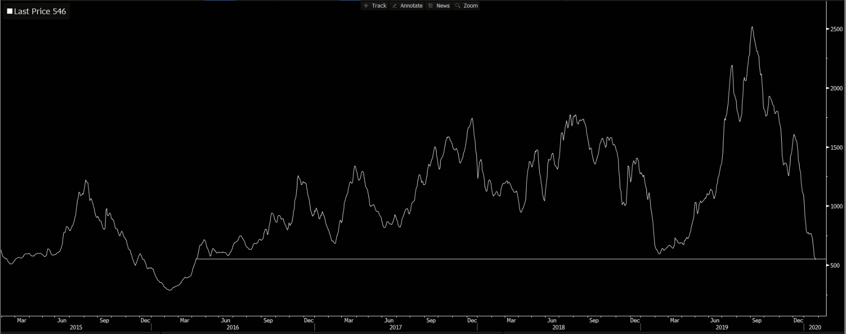 Obchodná vojna medzi USA a Čínou bola charakteristická ochladením obchodných vzťahov, čo sa podpísalo na poklese nákladov na lodnú prepravu (keďže klesá dopyt). Dopyt však aj naďalej pokračuje v poklese vďaka spomínanému vírusu, čo sa v konečnom dôsledku môže odzrkadliť na slabých januárových a februárových dátach.