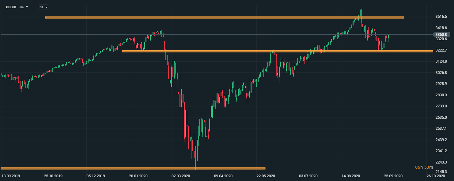 Americký akciový index US500 dnes zaznamenal nárast a približuje sa k hladine 3400 bodov. V prípade, ak by sa udržala pozitívna nálada na trhoch, akciový index môže pokračovať v raste k historickým maximám. Treba mať na pamäti, že investori budú teraz ostro sledovať správy týkajúce sa dodatočných fiškálnych stimulov v USA. Zdroj: xStation5