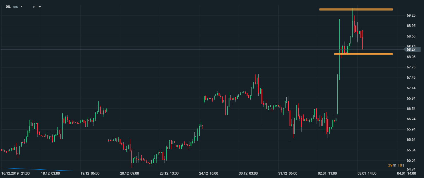 Napätie medzi USA a Iránom by mohlo ohroziť dodávky ropy, na čo cena čierneho zlata reagovala rastom o viac ako 3%. Neistota naopak prospieva drahým kovom a JPY, ktoré dnes zaznamenali nárast.