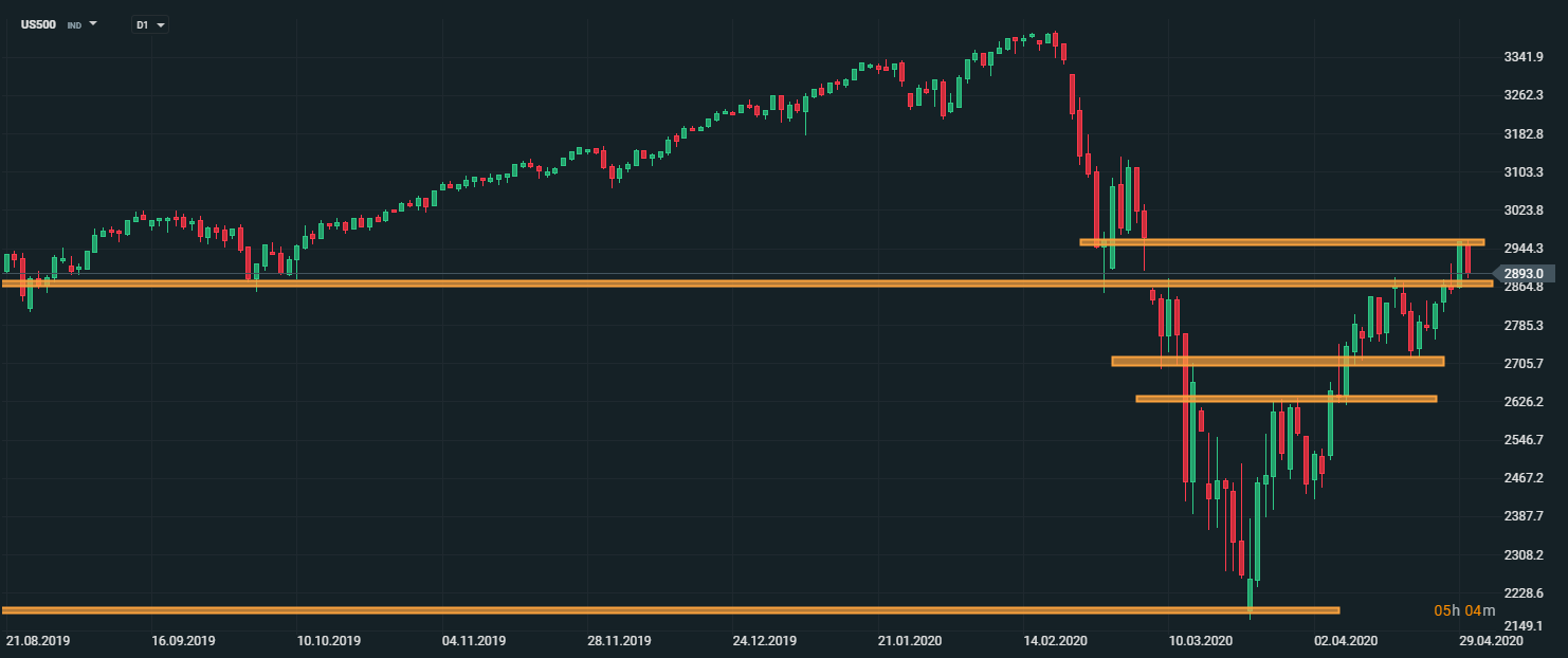 Nálada na trhoch sa dnes zhoršila, vďaka výraznému odhadovanému poklesu HDP Eurozóny. Taktiež žiadosti o podporu v USA zaznamenali výraznejší nárast, ako sa očakávalo. Investori očakávali, že ECB naznačí počas dnešného zasadania nejaké ďalšie možné stimuly, k čomu nedošlo. V neposlednom rade treba povedať, že nemecká spolková vláda odďaľuje rozhodnutie otvoriť školy, škôlky a obnovenie nemeckej sezóny Bundesligy.