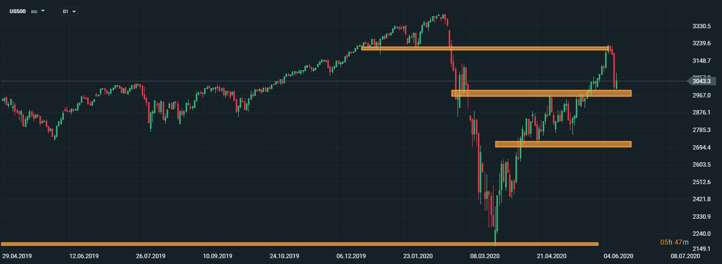 Akciové indexy sa dnes spamätávali zo včerajšieho prudkého poklesu, ktorý bol spôsobený obavami z druhej vlny šírenia koronavírusu v USA, keďže niektoré štáty pristúpili príliš skoro k uvoľňovaniu opatrení a zaznamenali nárast nových prípadov koronavírusu. Medzi ohrozené štáty patria napríklad Texas, Florida a Kalifornia. Podľa medzinárodného menového fondu je oživenie svetovej ekonomiky pomalšie, ako sa očakávalo, čo taktiež prispelo ku zhoršeniu nálady na trhoch.