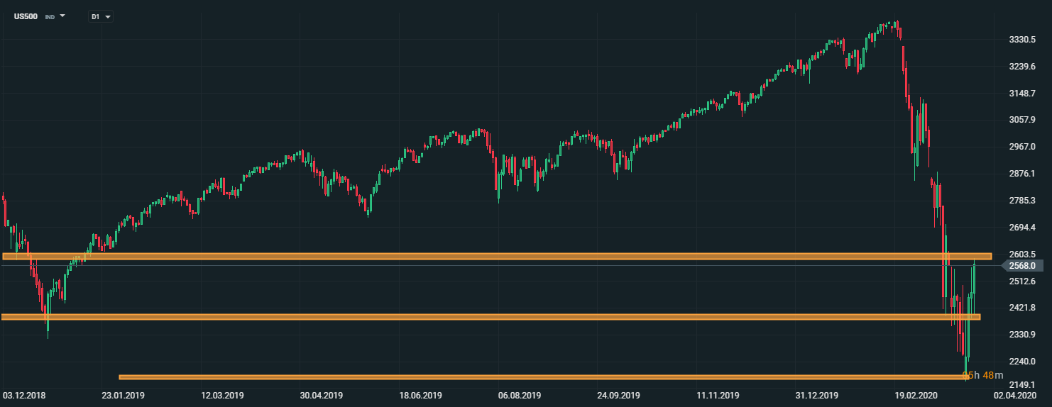 Nálada na trhoch sa zlepšila po tom, čo americká vláda schválila stimulačný balík na zabránenie negatívnym dopadom koronavírusu v objeme 2 biliónov dolárov. Tento masívny fiškálny stimul prispieva k oslabovaní amerického dolára, pričom podporuje nárast na akciových trhoch. Treba však poznamenať, že pozitívna nálada na trhoch môže byť len krátkodobá a akonáhle pominie optimizmus týkajúci sa stimulačných opatrení, akciové indexy sa opäť môžu dostať pod tlak, nakoľko počet nových prípadov nákazy v USA rapídne rastie. Treba mať na pamäti, že negatívna situácia týkajúca sa koronavírusu sa týmito stimulačnými opatreniami nevyriešila a stále je vo svete prítomná. Stimuly skôr pomôžu odvrátiť to, aby sa problémy pretavili aj do finančného sektora, pričom majú do istej miery eliminovať masívne prepúšťanie a podporiť spotrebu.