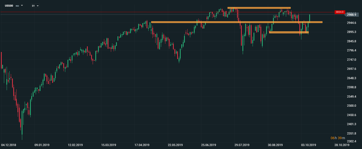 Americký akciový index US500 zaznamenal kvôli pozitívnemu vývoju americko-čínskych obchodných rozhovorov najvýraznejší nárast za posledné dva mesiace (+2%). V prípade, ak cena dokáže prekonať hranicu 3000 bodov, otvorí sa priestor pre rast k historicky najvyšším úrovniam.Zdroj: xStation5