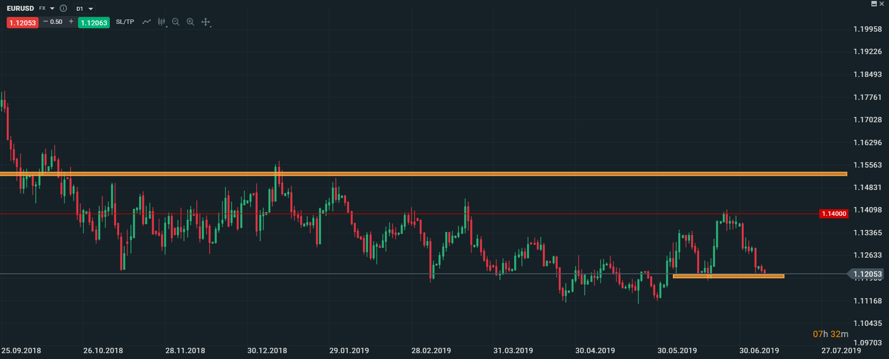Menový pár EURUSD testuje kľúčovú úroveň v oblasti 1,12. Ďalší smer bude pravdepodobne určovať zajtrajšie vyjadrenie šéfa Fedu – Powella ohľadom budúceho smerovania úrokových sadzieb. Zdroj: xStation5
