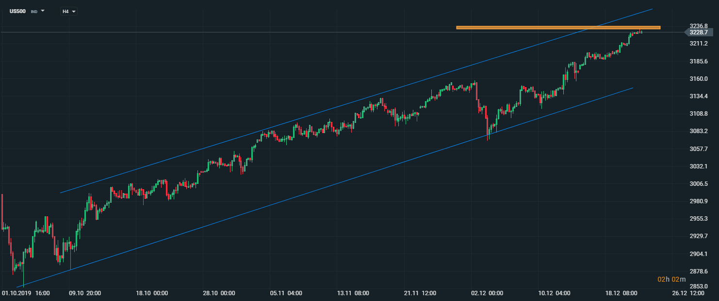 Americký akciový index US500 sa obchoduje v blízkosti historicky najvyšších úrovní, pričom priestor na rast ostáva otvorený k hornej hranici rastového trendového kanála. Zdroj: xStation5