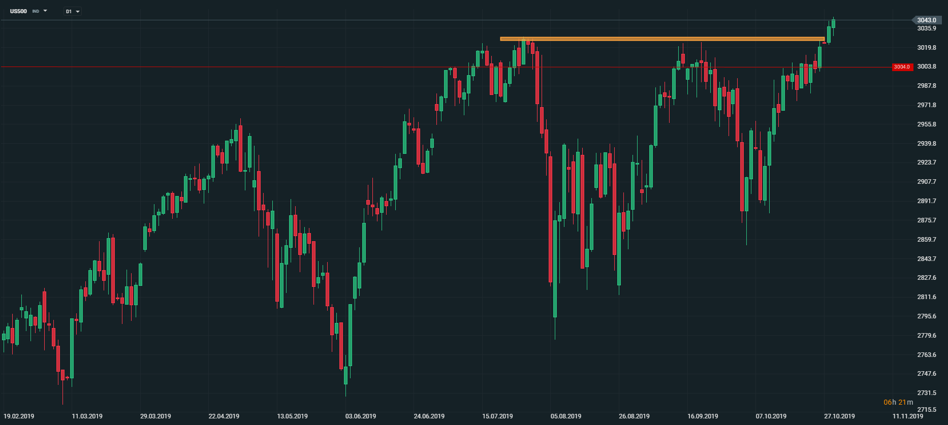 Akciové indexy v USA sa síce obchodujú na historicky najvyšších úrovniach, avšak treba poznamenať, že optimizmus ohľadom obchodnej dohody medzi USA a Čínou mierne ochladol po tom, čo sa objavili správy, že USA a Čína by nemuseli podpísať prvú časť obchodnej dohody podľa plánu budúci mesiac v Čile. Do istej miery to môže vyzerať aj tak, že americký prezident Donald Trump chce „umelo“ vytvoriť neistotu, aby pritlačil FED k zníženiu úrokových sadzieb, čo si pravdepodobne myslia aj investori, keďže po týchto správach nedošlo k nejakým výrazným poklesom na akciových trhoch.
