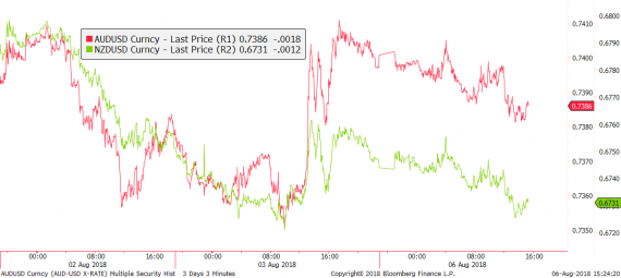 Asijská nervozita ale zůstává v Asii a mimo tento region se výrazněji přelévá snad pouze do ocenění AUD a NZD. Ty dnes na páru s dolarem opět mírně ztrácejí a postupně tak likvidují část zisků, které koncem minulého týdne nabraly po zveřejnění amerických NFP. Situaci na obou měnách v tomto týdnu může výrazně ovlivnit rozhodování RBA a RBNZ o sazbách, od kterých se ale žádný přehnaný optimismus neočekává.