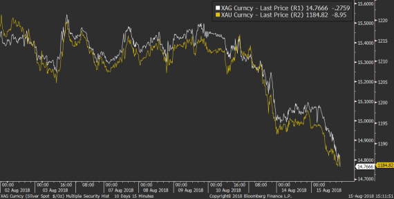 Větší riziková averze naopak nijak nepomáhá drahým kovům, které i dnes trpí a znovu potvrzují že definitivně ztratily pevnou půdu pod nohama.