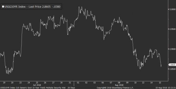 Po dvou klidných seancích se nám dnes na akciovém trhu opět připomíná mírná nervozita. Ta podle všeho souvisí hlavně se silným dolarem a strachem z jeho dopadu na situaci v emerging makets ekonomikách. I tentokrát se přitom mluví hlavně o Turecku, kde se tamní regulátor rozhodl bojovat se slábnoucí lirou zavedením opatření, která budou komplikovat spekulace na její další oslabování. Lira dnes sice pokračuje v mírném zpevňování, strach z dalšího výprodeje na EM trzích ale i nadále jednoznačně přetrvává.