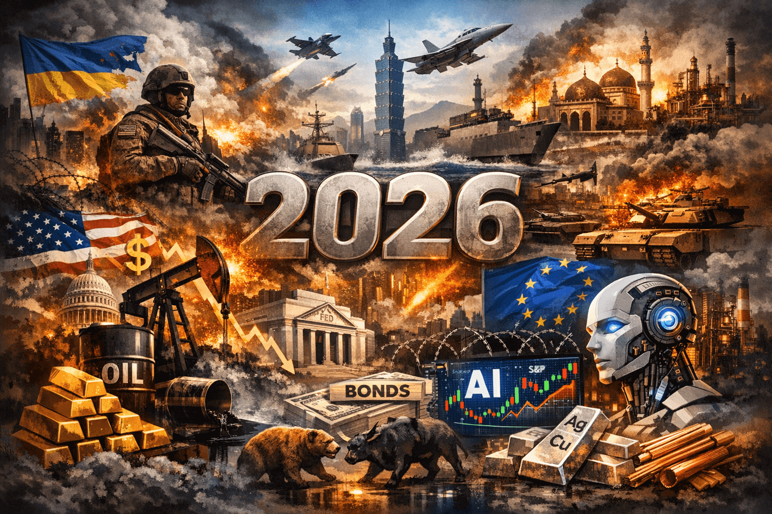Začínáme geopolitikou, protože podle nás nedojde k „ochlazení“ napětí. Ukrajina zůstává táhlým konfliktem, Blízký východ je dál sud se střelným prachem, kolem Taiwanu roste napětí a i epizody typu Venezuela a Írán mohou zvyšovat nervozitu. Tržní stopa geopolitiky se často nejrychleji ukáže na komoditách, jako je ropa a zlato.