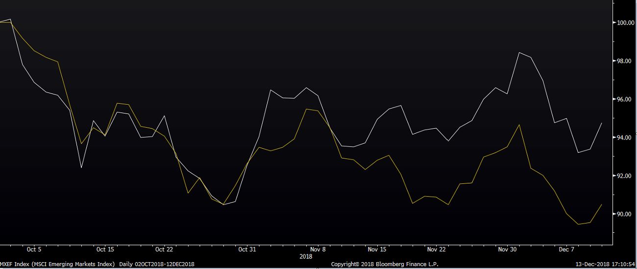 V posledných týždňoch sa deje v jedna zaujímavá vec – aktívam emerging markets sa darí relatívne dobre. Takmer stále je to pritom tak, že v čase negatívnej nálady na trhoch sa im nedarí, pretože ich ekonomiky bývajú viac zraniteľné (sú viac závislé na zahraničnom dopyte a aj zahraničnom kapitáli).