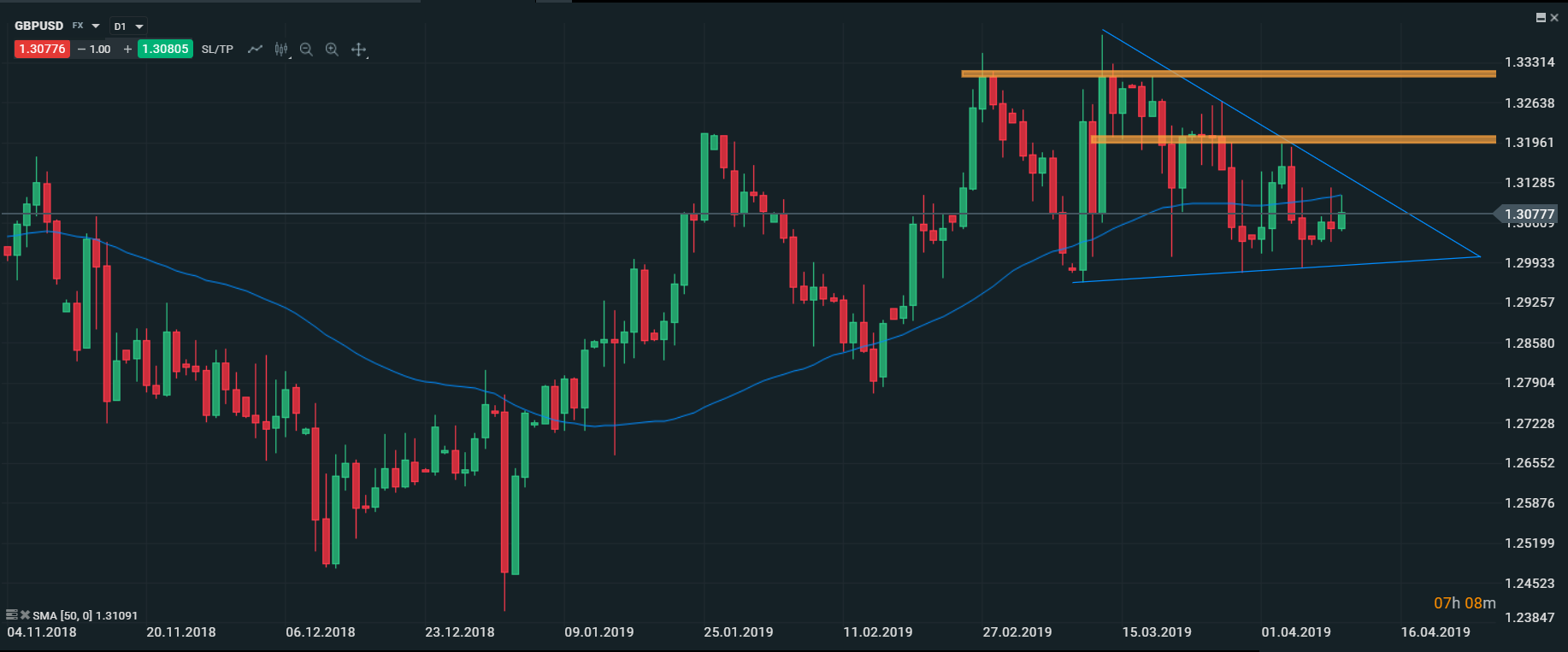 Mimoriadny summit EÚ ohľadom Brexitu zatiaľ nahráva libre. Vyzerá to tak, že odklad bude Británii schválený, avšak vynára sa otázka, aký dlhý odklad bude? Mayová žiadala odklad do 30. júna, pričom lídri EÚ uvažujú o predĺžení odkladu buď do decembra 2019, alebo do marca 2020. Nemci napríklad navrhujú odklad Brexitu do decembra, pričom Francúzi sú za kratší odklad. Výsledok summitu však môže priniesť zvýšenú volatilitu na libre.