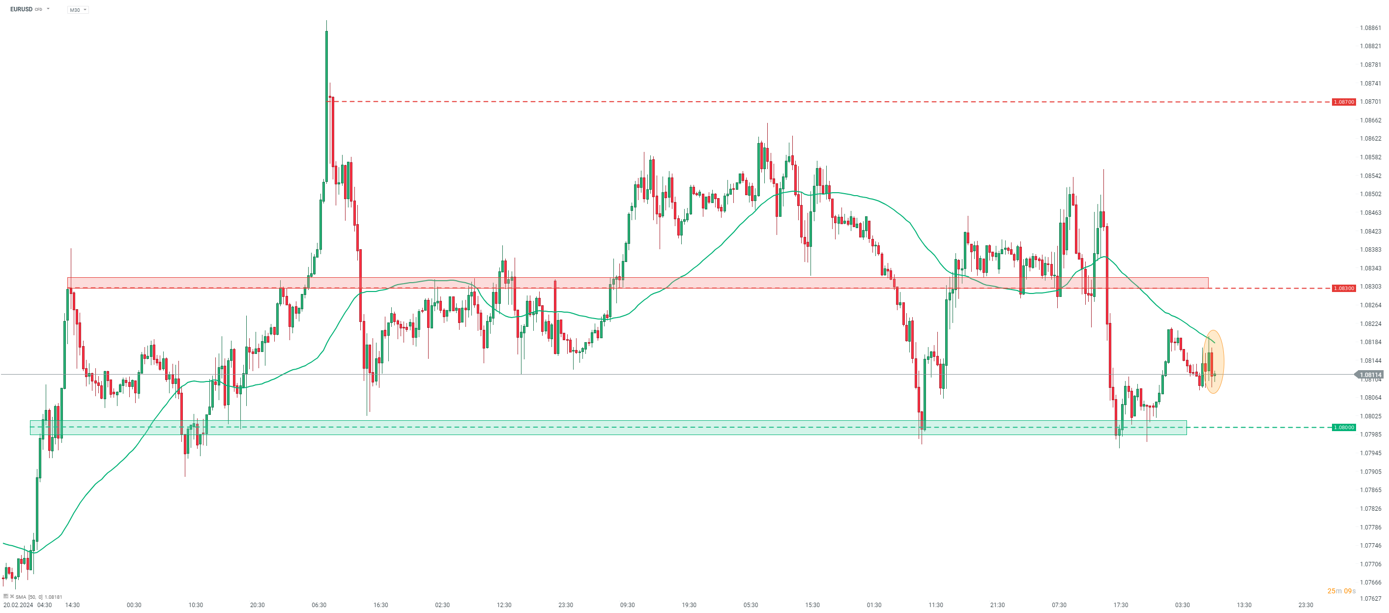 EURUSD se po únorových revizích PMI ve zpracovatelském průmyslu mírně snížil. Zdroj: xStation5