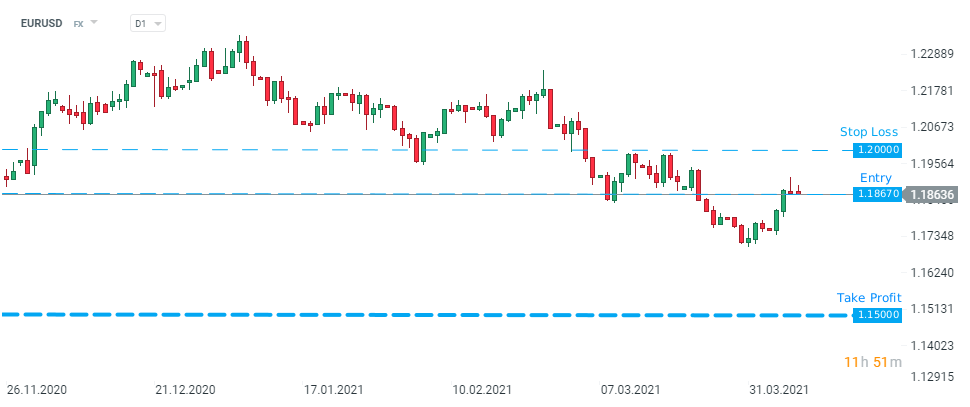Banka doporučuje short pozici s následujícími hladinami: