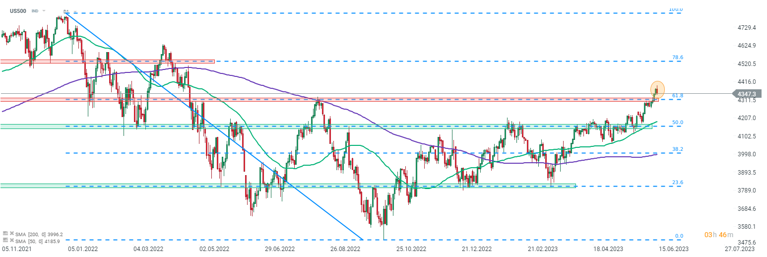 Futures na index S&P 500 (US500) se po rozhodnutí Fedu obrátily do záporu. Zdroj: xStation5