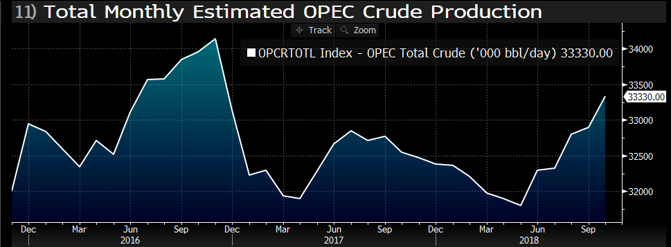 Co se dění na ropě týká, ta se o víkendu konečně dočkala příznivého fundamentu, když ji pomohly zprávy o tom, že se Saúdové chystají v prosinci omezit produkci o 500 tis. barelů, což by výrazně korigovalo nárůst produkce OPECu z několika posledních měsíců.