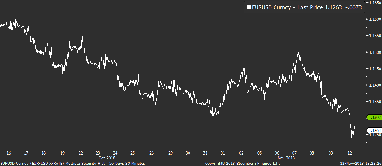 Na makro je pondělní seance chudá, takže se trh soustředí hlavně na dění na ropě a na dolaru. Dolar dnes ráno navázal na své zpevnění z konce minulého týdne a dokonce prolomil double-bottom formaci na ceně 1,13 EURUSD. Breakout pod tuto úroveň slouží jako zajímavý technický indikátor síly dolarových býků a samozřejmě pomohl dolaru i na ostatních měnových párech.