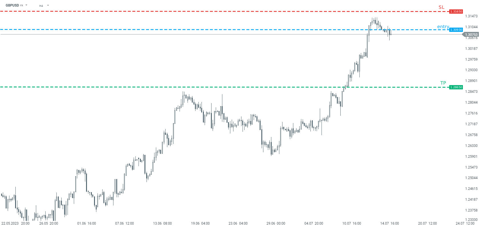 IFR doporučuje zaujmout krátkou pozici na GBPUSD za tržní cenu s cílem na 1,2865 a stop loss příkazem na 1,31650. Zdroj: xStation5