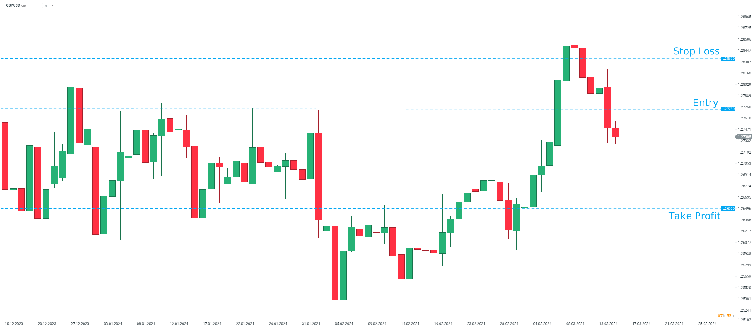 IFR doporučuje zaujmout krátkou pozici na GBPUSD za tržní cenu s cílem 1,2650 a příkazem stop loss umístěným na 1,2835. Zdroj: xStation5