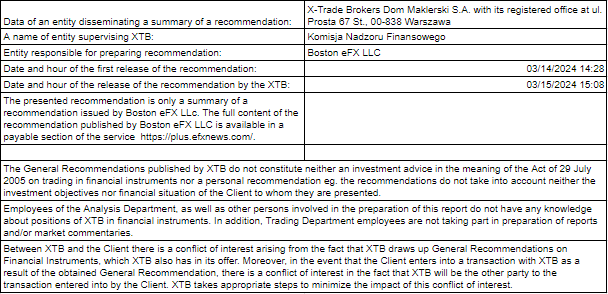 Rozdílové smlouvy jsou komplexní nástroje a v důsledku použití finanční páky jsou spojeny s vysokým rizikem rychlého vzniku finanční ztráty. U 71 % účtů retailových investorů došlo při obchodování s rozdílovými smlouvami u tohoto poskytovatele ke vzniku ztráty. Měli byste zvážit, zda rozumíte tomu, jak rozdílové smlouvy fungují, a zda si můžete dovolit vysoké riziko ztráty svých finančních prostředků. Investování je rizikové. Investujte zodpovědně. Tento materiál je marketingovou komunikací ve smyslu čl. 24 odst. 3 směrnice Evropského parlamentu a Rady 2014/65/EU ze dne 15. května 2014 o trzích finančních nástrojů, kterou se mění směrnice 2002/92/ES a směrnice 2011/61/EU (MiFID II). Marketingová komunikace není investiční doporučení ani informace doporučující či navrhující investiční strategii ve smyslu nařízení Evropského parlamentu a Rady (EU) č. 596/2014 ze dne 16. dubna 2014 o zneužívání trhu (nařízení o zneužívání trhu) a o zrušení směrnice Evropského parlamentu a Rady 2003/6/ES a směrnic Komise 2003/124/ES, 2003/125/ES a 2004/72/ES a nařízení Komise v přenesené pravomoci (EU) 2016/958 ze dne 9. března 2016, kterým se doplňuje nařízení Evropského parlamentu a Rady (EU) č. 596/2014, pokud jde o regulační technické normy pro technická ujednání pro objektivní předkládání investičních doporučení nebo jiných informací doporučujících nebo navrhujících investiční strategie a pro zveřejnění konkrétních zájmů nebo náznaků střetu zájmů nebo jakékoli jiné rady, a to i v oblasti investičního poradenství, ve smyslu zákona č. 256/2004 Sb., o podnikání na kapitálovém trhu. Marketingová komunikace je připravena s nejvyšší pečlivostí, objektivitou, prezentuje fakta známé autorovi k datu přípravy a neobsahuje žádné hodnotící prvky. Marketingová komunikace je připravena bez zohlednění potřeb klienta, jeho individuální finanční situace a nijak nepředstavuje investiční strategii. Marketingová komunikace nepředstavuje nabídku k prodeji, nabídku, předplatné, výzvu na nákup, reklamu nebo propagaci jakýchkoliv finančních nástrojů. Společnost XTB S.A., organizační složka nenese odpovědnost za jakékoli jednání nebo opomenutí klienta, zejména za získání nebo zcizení finančních nástrojů, na základě informací obsažených v této marketingové komunikaci. V případě, že marketingová komunikace obsahuje jakékoli informace o jakýchkoli výsledcích týkajících se finančních nástrojů v nich uvedených, nepředstavují žádnou záruku ani předpověď ohledně budoucích výsledků. Minulá výkonnost nemusí nutně vypovídat o budoucích výsledcích a každá osoba jednající na základě těchto informací tak činí zcela na vlastní riziko.
