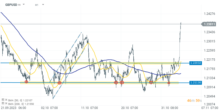 Pár GBPUSD se vyšplhal na šestitýdenní maximum a prolomil klíčové úrovně technické rezistence. Měnový pár vykazuje krátkodobou sílu. Zdroj: xStation 5