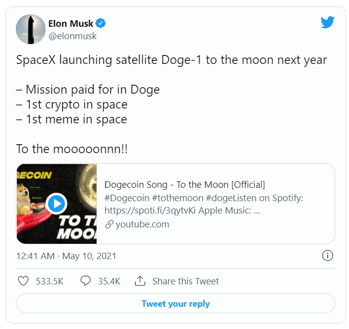 Dogecoin letí na měsíc! Zdroj: Twitter
