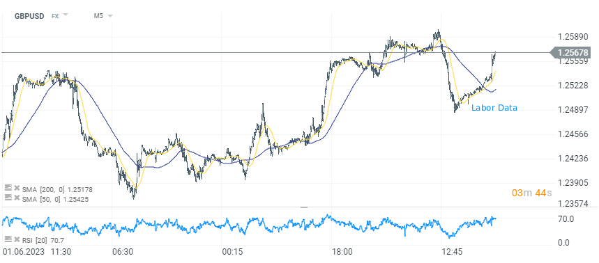 - GBPUSD po zveřejnění údajů vzrostl z 1,2530 na maximum 1,2566.