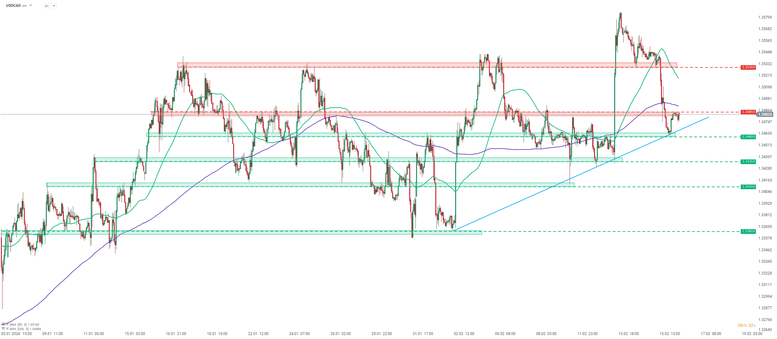 Podíváme-li se na graf USDCAD v intervalu H1, vidíme, že pár se včera po neuspokojivých údajích o maloobchodních tržbách v USA propadl a výprodej se zastavil v zóně supportu 1,3460, vyznačené předchozími cenovými reakcemi a krátkodobou vzestupnou trendovou linií. Později se pár pokusil o zotavení, ale postup byl zastaven v zóně rezistence 1,3485. Dvěma krátkodobými úrovněmi, které je třeba sledovat, jsou zmíněná rezistence 1,3485 a vzestupná trendová linie, která momentálně probíhá v oblasti 1,3468.