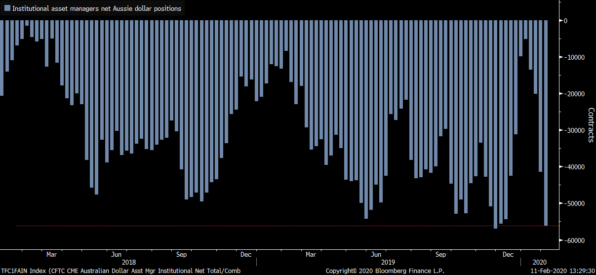 Koronavirus srazil australský dolar na kolena a ani korekce z posledních seancí na tom příliš nezměnila. Pár AUDUSD se v pátek podíval na jedenáctiletá minima, když se obchodoval až na "ďábelské" úrovni 0,66666 AUDUSD. Od začátku roku už ztrácel až 5,2 %. Dobré mínění nemají o Australanu ani velcí obchodníci. Jejich sázky na jeho další pokles ve formě net-short pozic prudce rostou. Po dvou měsících se dostaly zpět k úrovni 55 tisíc kontraktů na téměř nejvyšší úrovně minimálně od roku 2006 (dle CFTC). Situace vypadá dobře nastavena pro případný kontrariánský obchod. Pokud by se podařilo vyřešit největší rizika pro AUD - koronavirus a s ním spojený propad cen komodit, mohla by poptávka po AUD začít dramaticky stoupat. Snaha obchodníků uzavřít short spekulace by mohla být velmi rychlá.