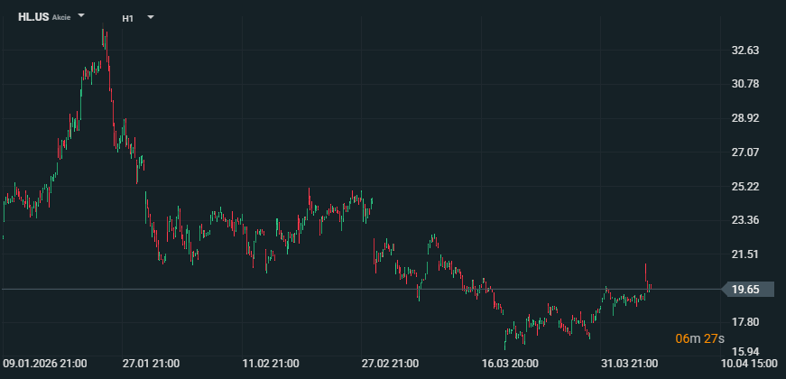 • Akcie Hecla od začátku roku prudce oslabily a 8. dubna se obchodovaly kolem 19,18–19,67 USD, výrazně pod 52týdenním maximem 34,17 USD.