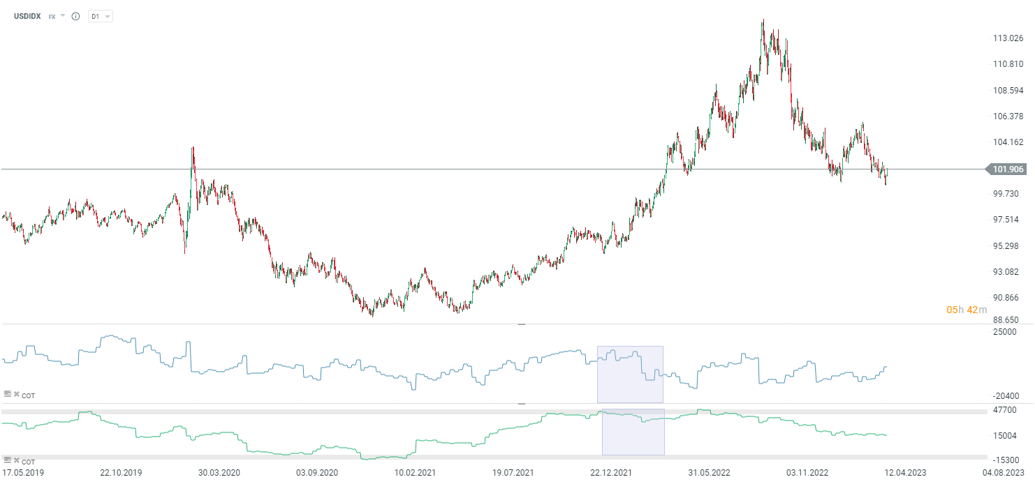 Závěry se zdají být téměř protichůdné, ale na druhou stranu lze očekávat, že HF očekávají krátkodobé oživení dolaru v důsledku nedávného značného výprodeje, který trval od loňského podzimu. Na druhou stranu je nepravděpodobné, že by se trend, který tehdy započal, v dlouhodobějším horizontu změnil. Zdroj: xStation5