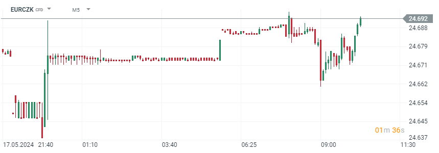 Koruna na páru s eurem v bezprostřední reakci mírně posílila, nicméně od zveřejnění již své zisky szmazala.