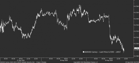 Větší volatility jsme se dnes dočkali také na AUDUSD, který brzy ráno začal výrazně ztrácet a který se odpoledne dostal pod úroveň 0,73 AUDUSD. Důvody výprodejů lze hledat jen obtížně, ale pád AUD časově koreluje s oznámením největšího australského poskytovatele hypoték (Wespack), který uvedl že navýší své úroky na nové hypotéky. To mohlo znervóznět obchodníky kvůli případnému dopadu na dlouho přehřívající se trh s bydlením.