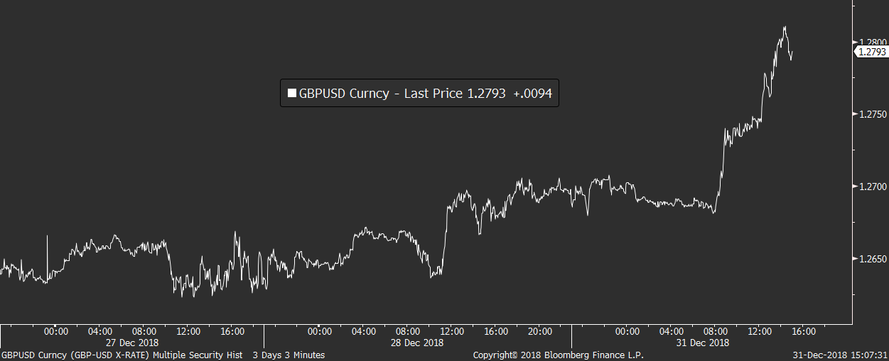 Britská měna dnes roste na většině měnových párů a na páru s dolarem krátce vystoupala až na 1,28 GBPUSD. Nových fundamentů jsme se z Británie ale příliš nedočkali a ty které přišly paradoxně libře příliš nenahrávají. Na mysli máme vyjádření amerického velvyslance v Británii, který znovu zopakoval, že obchodní dohoda mezi Británií a USA nebude při schválení současné podoby brexitu možná.