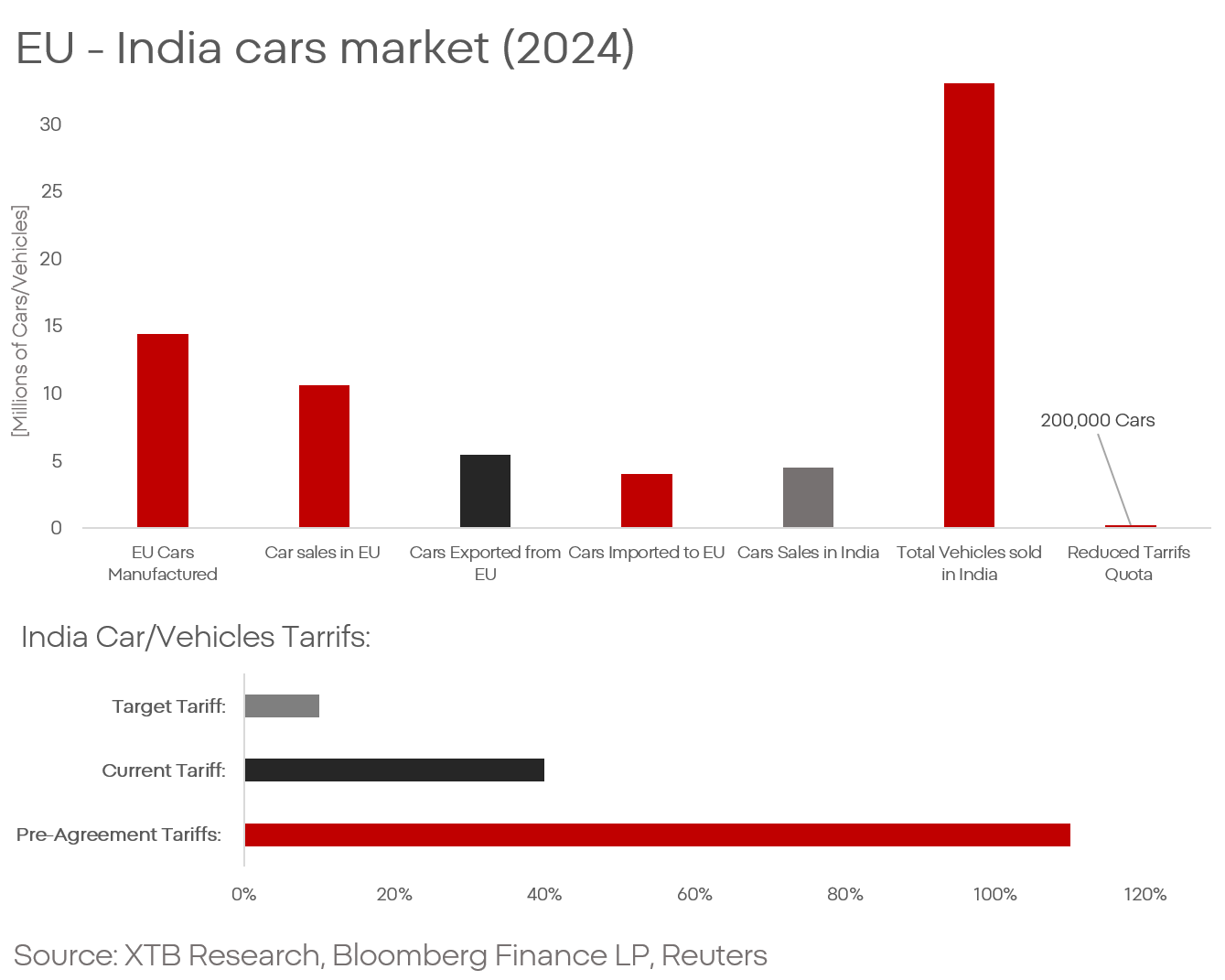 Jádrem dohody je snížení cel na automobily vyvážené do Indie. Indický trh je chráněn enormními cly na automobily, které přesahují 100 %. Podle dohody mají být cla nejprve snížena na 40 % a poté na 10 %, s kvótou 200 000 vozidel. Podobná ujednání se vztahují na elektromobily a jejich součásti.