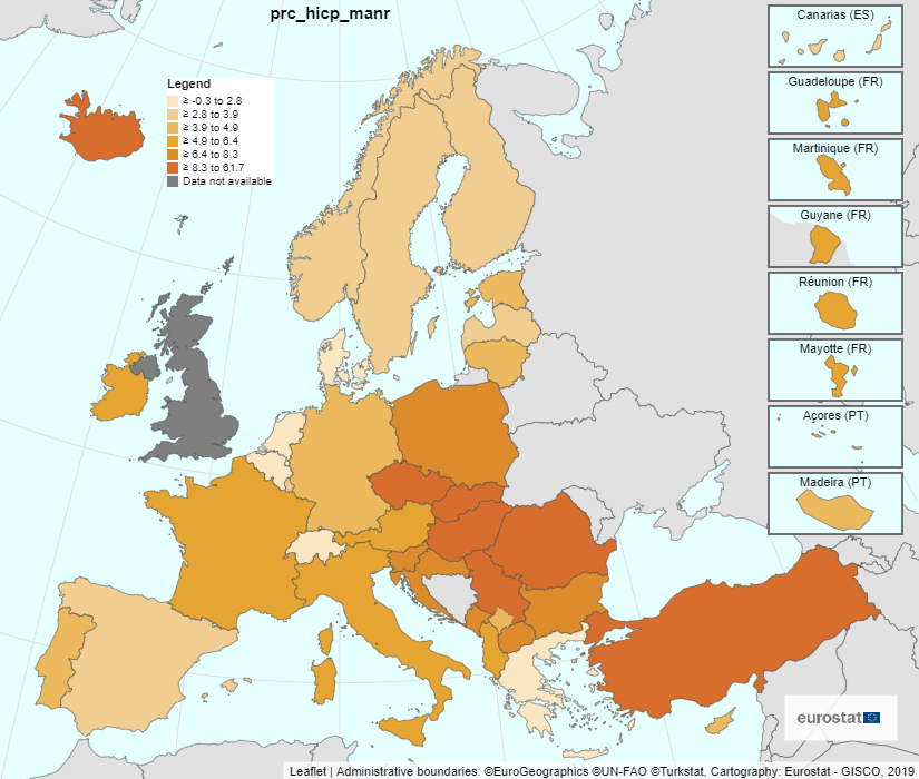 Slovensko je stále na chvostu eurozóny s nejvyšší inflací, když podle harmonizovaného indexu spotřebitelských cen ceny na Slovensku stále rostou tempem 9 %, což je o 0,8 % více než index sestavovaný slovenským statistickým úřadem.