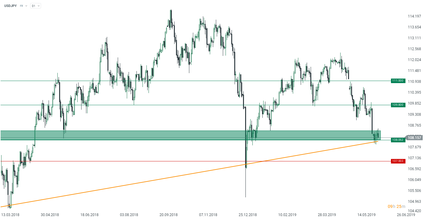 Americký dolar klesá v důsledku zveřejnění makrodat. Obchoduje se v blízkosti důležité technické úrovně na páru s japonským jenem. Zdroj: xStation5