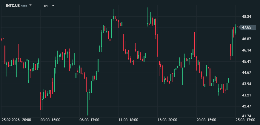 Akcie Intelu 25. března vzrostly přibližně o 8 % a obchodovaly se kolem 47,59 USD po otevření na 45,92 USD a intradenním maximu 47,83 USD. Růst přišel poté, co Intel představil nové komerční PC portfolio postavené na procesu 18A a zároveň širší polovodičový sektor posílil díky vyšším očekáváním ohledně poptávky po CPU pro AI. Sentiment navíc zřejmě podpořily i zprávy o napjatější nabídce CPU a pevnější cenotvorbě.
