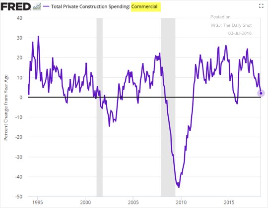 Na vzniknutú situáciu reagujú aj developeri. Medziročná zmena investícií do komerčných nehnuteľností sa priblížila k nule. A to aj napriek tomu, že americká ekonomika aktuálne zažíva boom. Dodám, že v tejto štatistike sú aj kancelárske priestory, čiže s maloobchodom to bude ešte horšie.