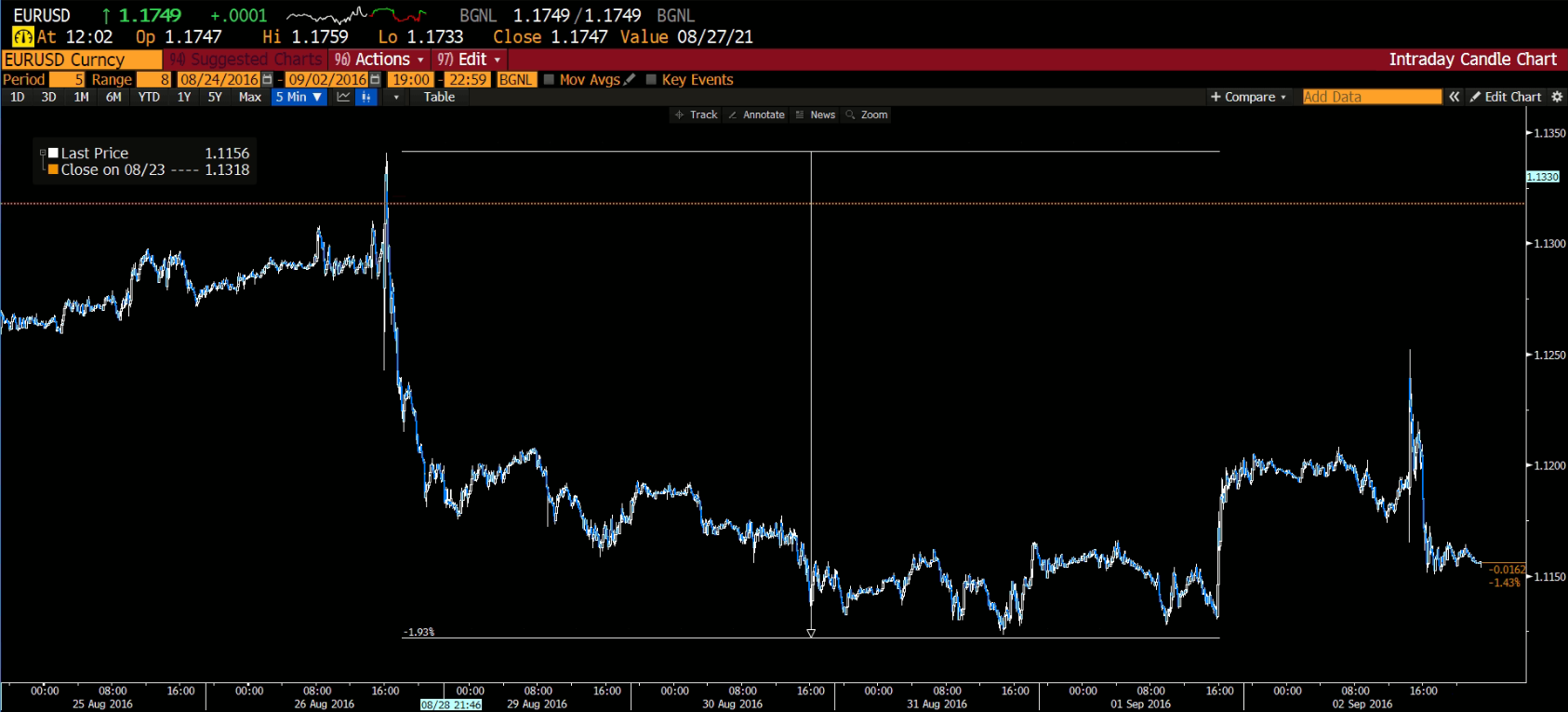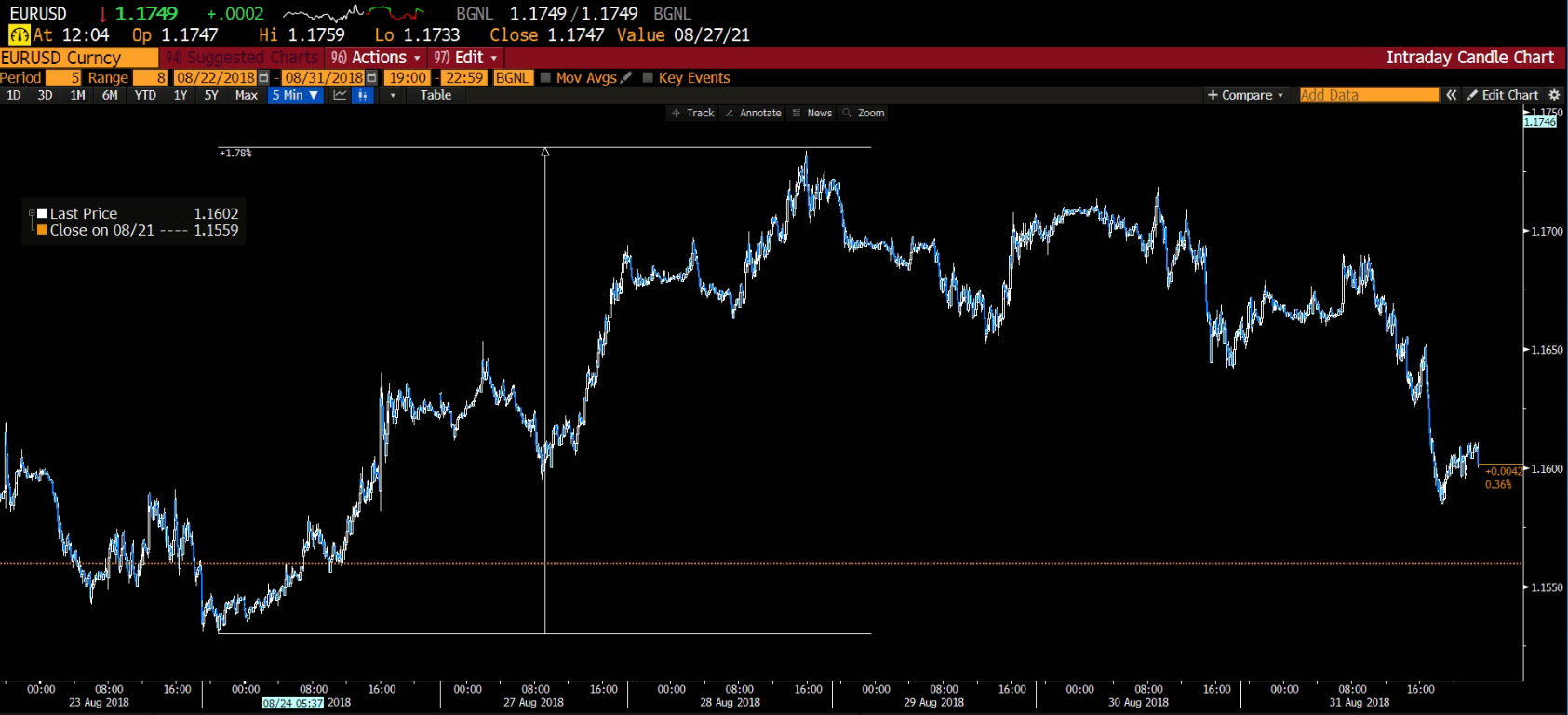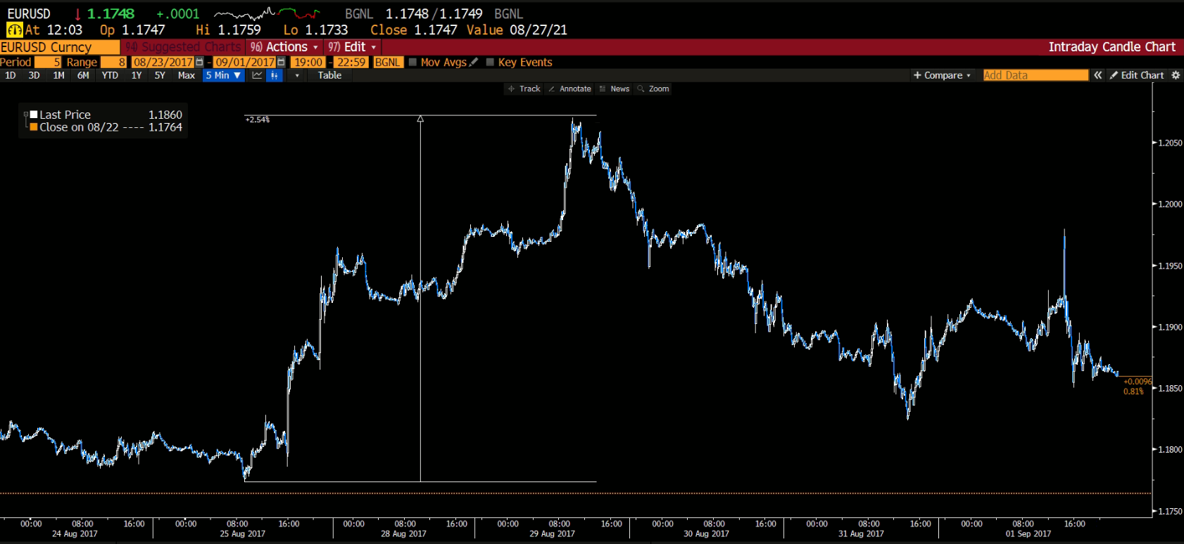 Samozrejme na trhu je potrebné sa pripraviť aj na neočakávané udalosti a prípadne počítať aj so scenármi, ktoré v prvotnom očakávaní, preto sme si pre Vás nižšie pripravili prehľad trhu S&P 500 a menového páru EURUSD, v spojitosti s priemernou volatilitou počas posledných sympózií v Jackson Hole. Aj táto štatistika by mohla byť pomocnou rukou na zabezpečenie svojho portfólia pred neočakávanými udalosťami a trhovou volatilitou. Ako časové obdobie sme zvolili štvrtok a piatok a celý nasledujúci týždeň.
