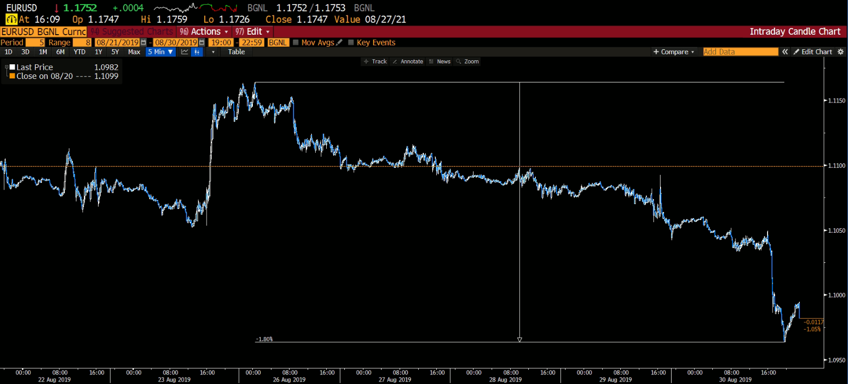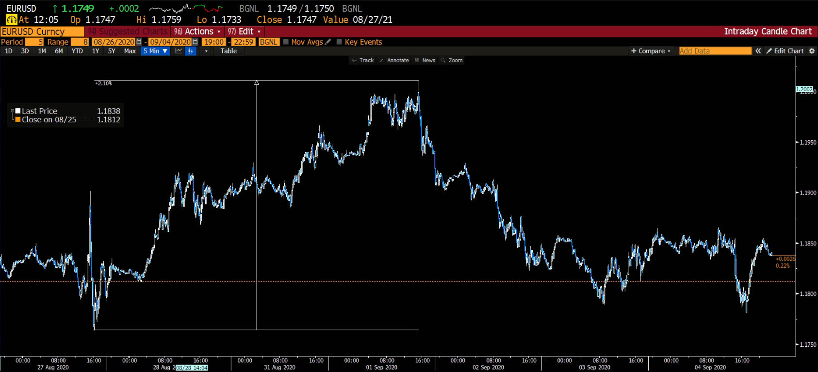 Silné dáta týkajúce sa zamestnanosti, ktoré boli zverejnené v USA za mesiac júl, prekvapili skvelým výsledkom aj samotných obchodníkov. Avšak ako sa uvádza v reporte FOMC minutes, „väčšina“ členov usúdila, že „ďalší podstatný pokrok“ smerom k cieľu maximálnej zamestnanosti ešte nebol splnený, hoci „väčšina“ verila, že tento cieľ bude splnený do konca roka. Očakávame, že Powell by mohol vrhnúť viac svetla na posun v oblasti dosiahnutia cieľa plnej zamestnanosti.