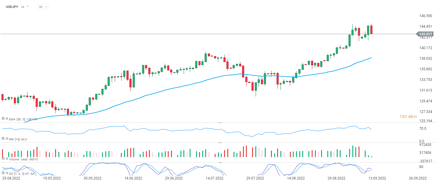 Pár USD/JPY míří k open včerejší svíčky D1. Zdroj: xStation 5